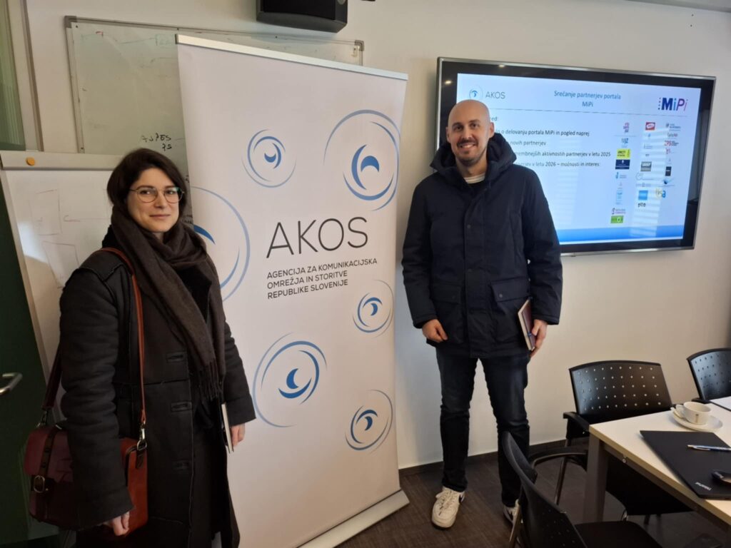 V Agenciji za komunikacijska omrežja in storitve RS (AKOS) je 2. decembra 2025 potekalo srečanje partnerjev portala MiPi – platforme za medijsko pismenost. Dogodek je bil namenjen pregledu delovanja v letu 2025, predstavitvi novih partnerjev ter razmisleku o nadaljnjem razvoju platforme in še intenzivnejšem sodelovanju v letu 2026. Na srečanju sta bila tudi predstavnika koprske knjižnice Urška Špende in Luka Depangher.